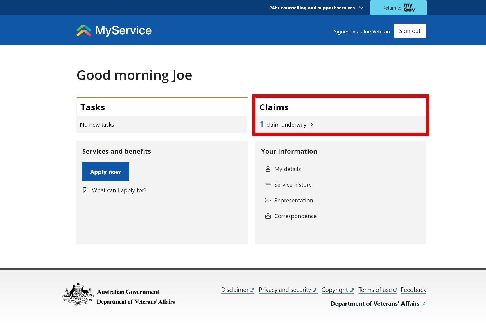 To agree to the terms in our Privacy notice and Declaration and begin your claim, select Next.