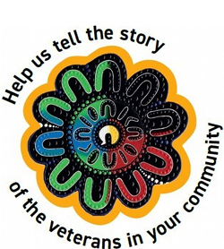 Indigenous artwork with the words: Help us tell the story of the veterans in your community.