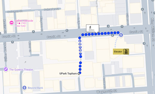 The lifts in both UPark and RAA Place are wheelchair accessible. The lifts to Level 10 are at the end of the building, on the opposite side to the Currie St entrance.