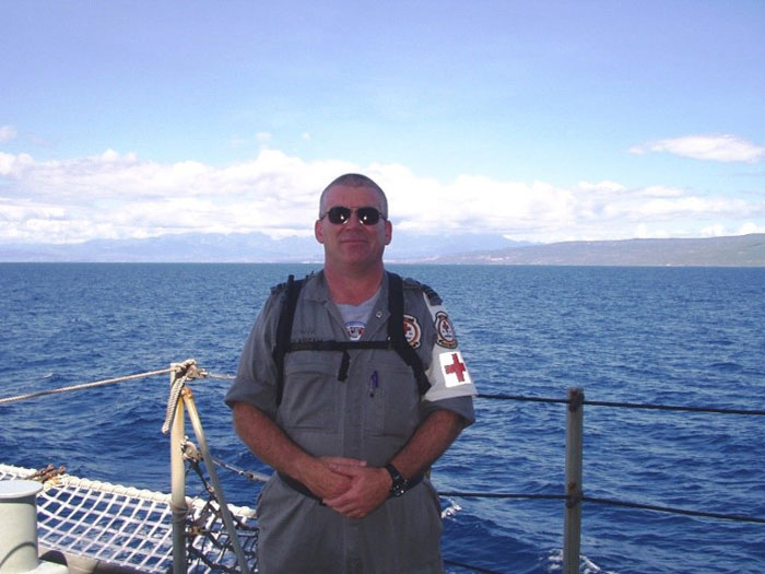Photographer unknown. (1999). Dave Lassam aboard HMAS Kanimbla. Photograph sourced by Dave Lassam.
