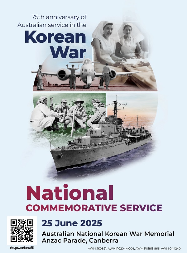 On 25 June 2025, we will hold a National Commemorative Service at the Australian National Korean War Memorial in Canberra to mark the 75th anniversary of Australian service in the Korean War and post-armistice period.
