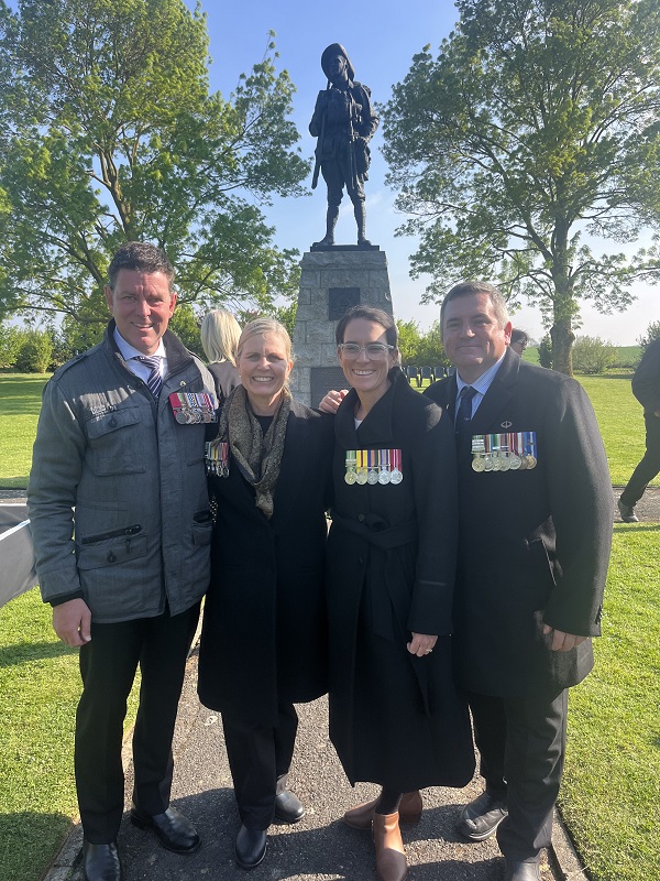 ‘I felt really honoured to be selected, with Bernadine, to lay a wreath on behalf of veterans and veterans’ families at the Dawn Service and share the reading of ‘In Flanders Fields’ at the Digger Service. The services had the same emotional context as they do in Australia, but I was really overwhelmed by how the French in the area embrace Anzac Day.’