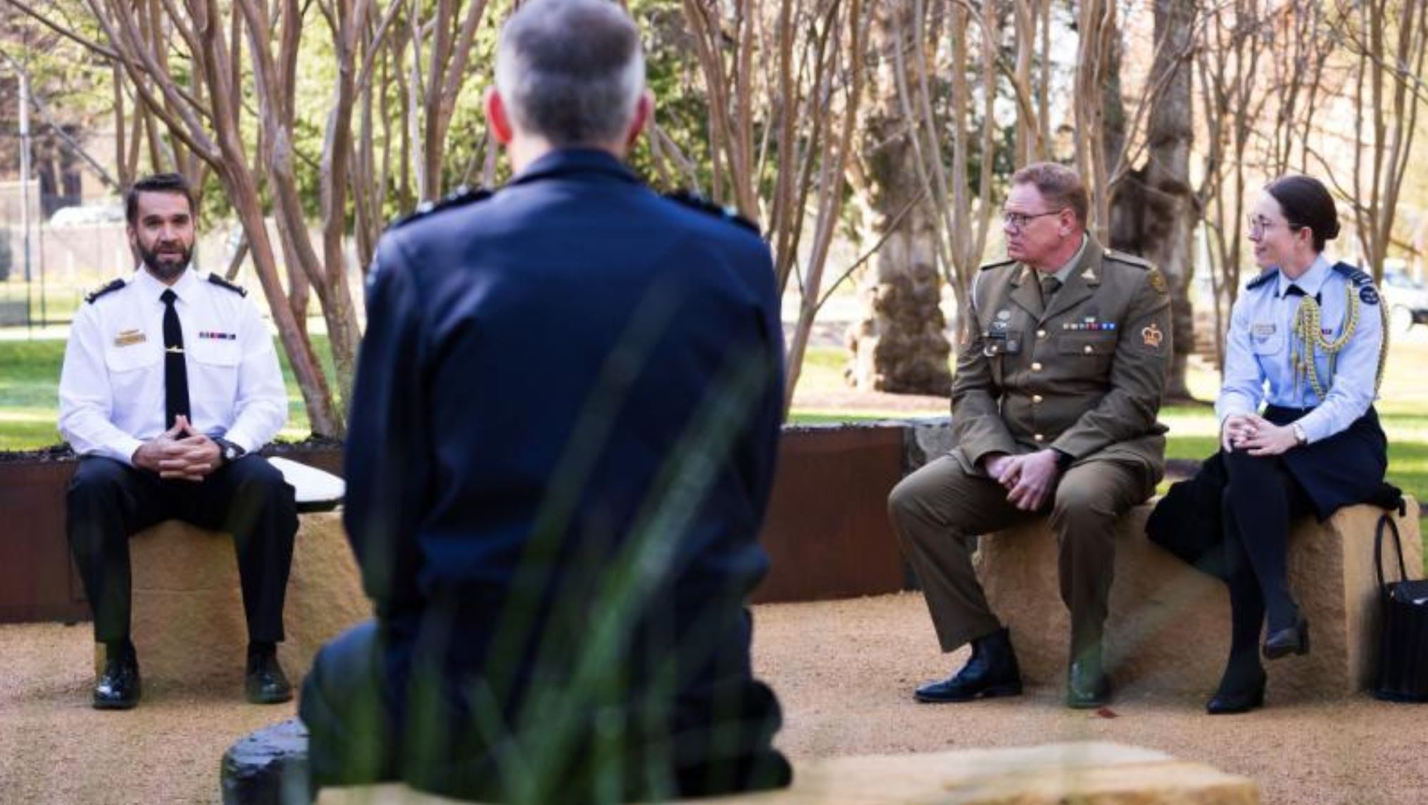 Chief of Air Force Air Marshal Robert Chipman meets with Indigenous Elders and current serving members at the Royal Military College – Duntroon’s Yarning Circle, Canberra. Photo: Corporal Sam Price
