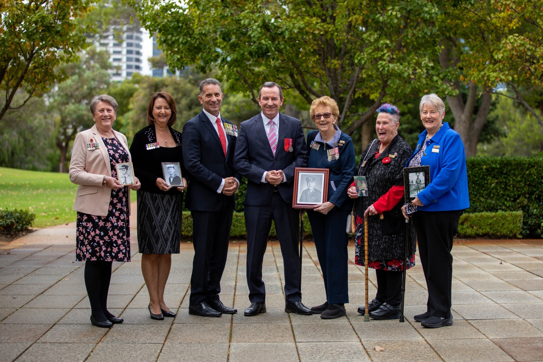 Below L to R: Mrs Kay Hair; Ms Emily Cook; Paul Papalia, Minister for Veterans Issues; Mark McGowan, former Premier; Mrs Hazel Donald; Mrs Sue Wilson; Mrs Jan McLeod