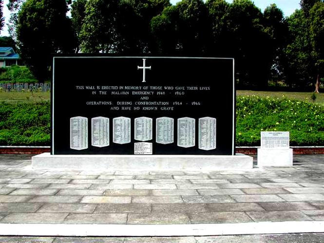 The Memorial to the Missing commemorates, by name, those Commonwealth Service personnel who died during the Malayan Emergency and Confrontation but whose bodies were never recovered.