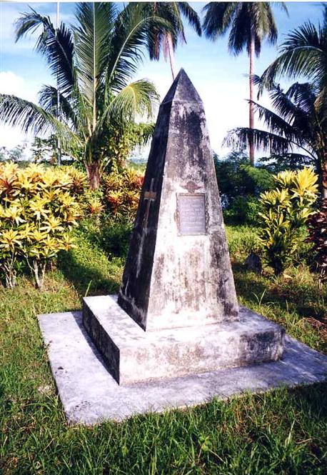 The memorial is located in the grounds of the Uniting Church, on Sohano Island.