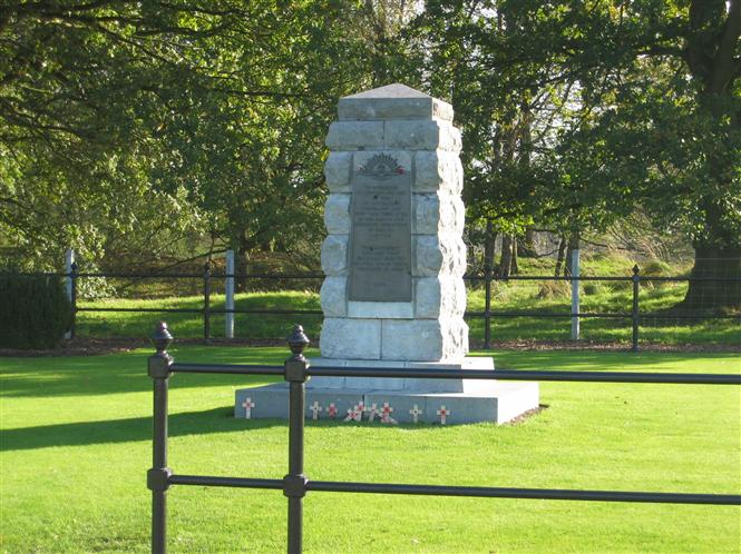 The Tunnellers' Memorial (Hill 60) is located by leaving Ypres on the Rijselsstraat via its southern exit through the Lille Gate and over the moat. At the roundabout go straight on into the N336 Rijselsteenweg. After about 500 metres there is a left turn just before the railway crossing. Turn left here onto a minor road called Konenseweg in the direction of Hollebeke. Approximately 4.5 kilometres along this road there is a left turn to Zwarteleen called Zwarteleenstraat. Continue for about 200 metres when you will drive over the Ypres-Comines railway. Hill 60 is on the right immediately after the railway bridge. There is a parking area large enough for a coach to park.