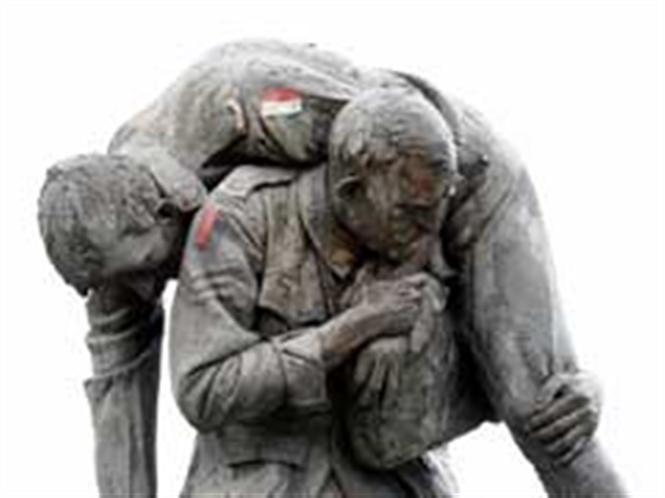 The central feature of the memorial park is the sculpture ‘Cobbers’, a soldier carrying a wounded man.