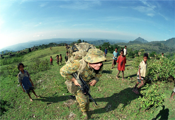 Green, A. (1999). Troops talking to locals. Op Annondale was a patrol tin the mountains near Sua. Defence Imagery